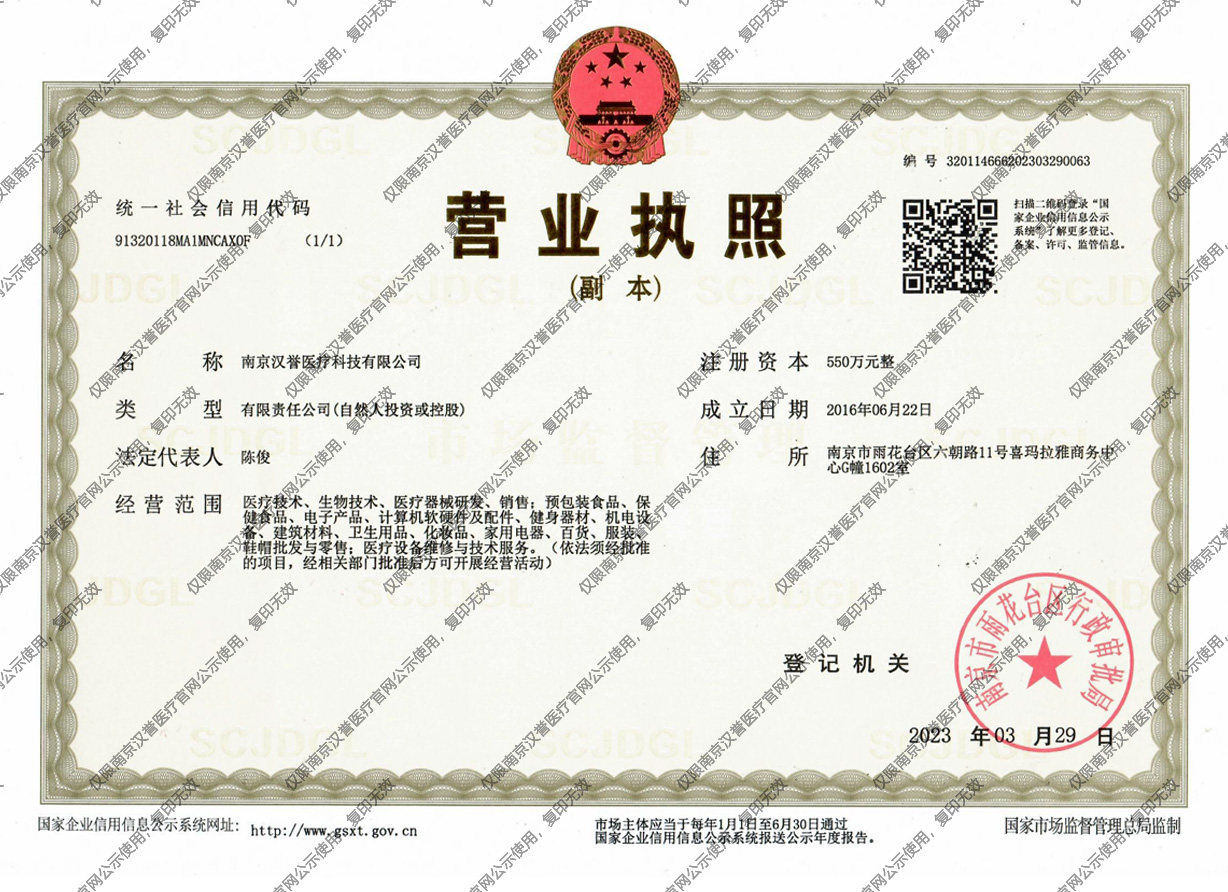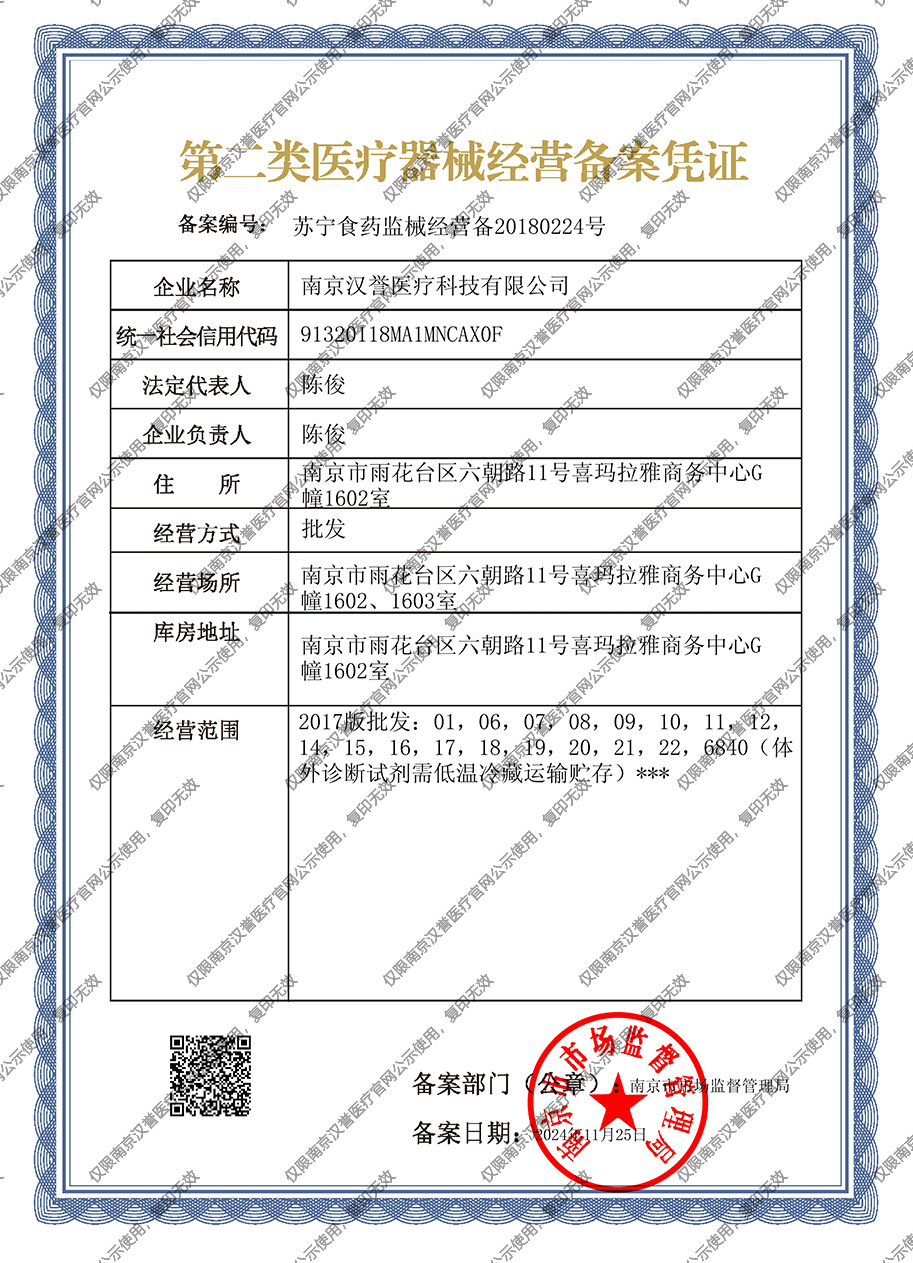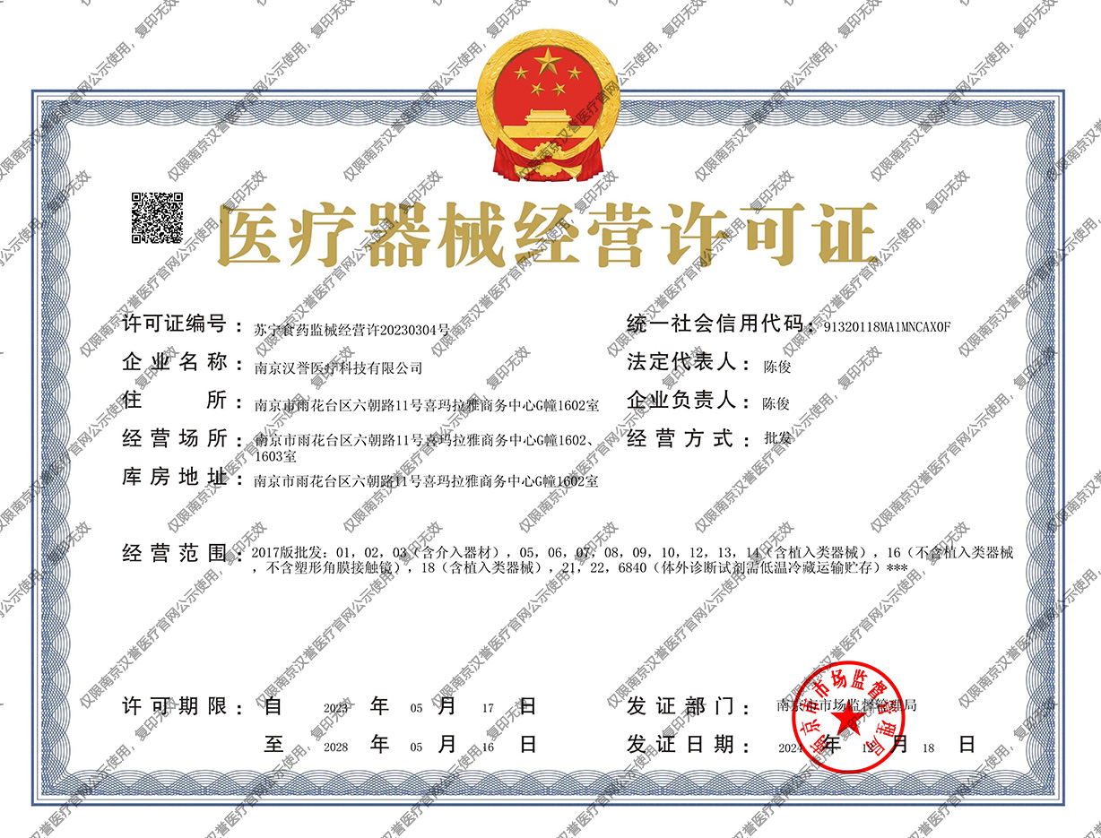 医疗器械经营许可证:苏宁食药监械经营许20230304号